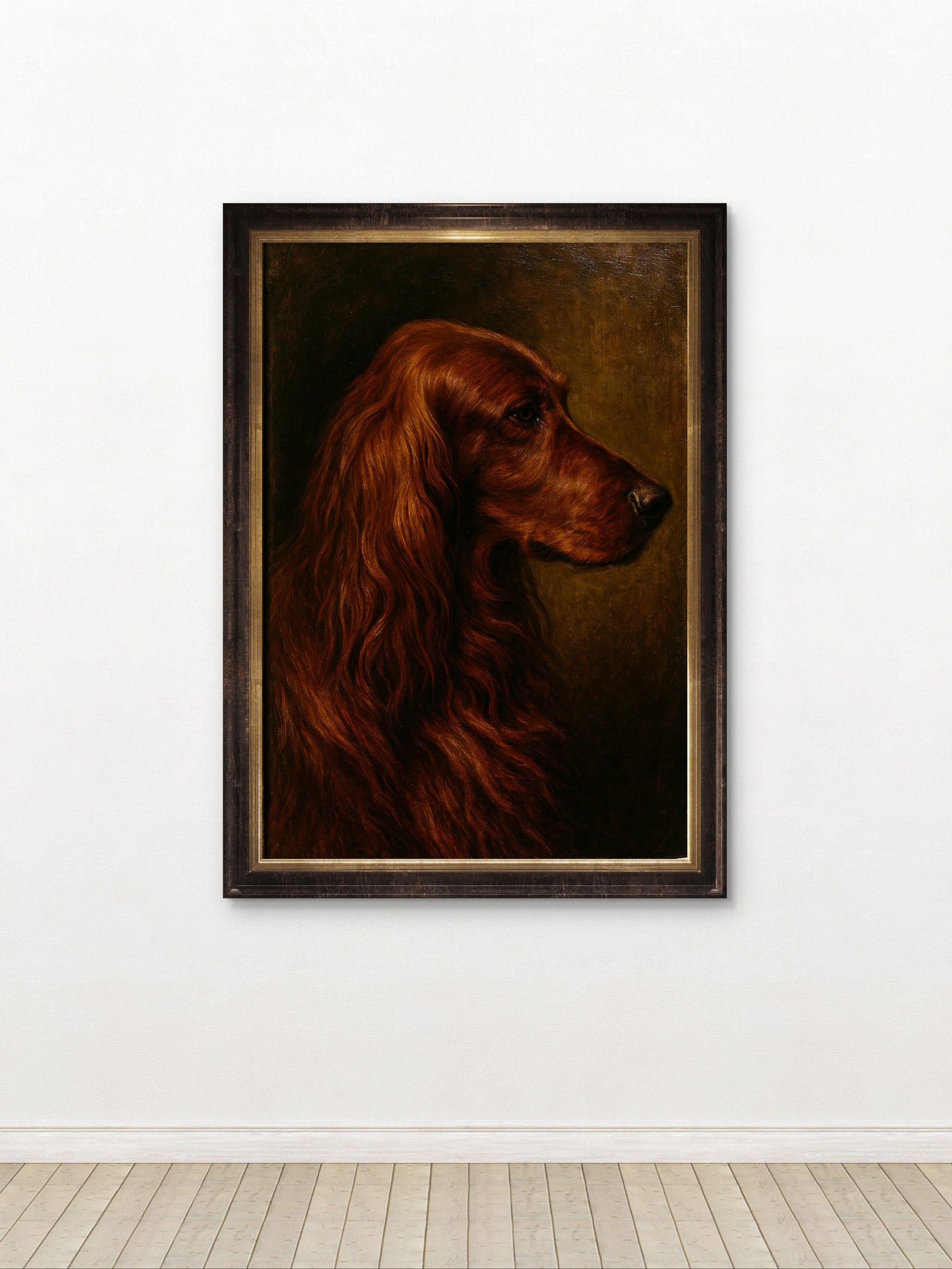 Her rich, mahogany-red coat glows against a subdued, old-world background — every brushstroke whispering of loyalty, warmth, and the noble temperament of a breed bred for both field and fireside. Best displayed above a fireplace, in a paneled study, or down a grand hallway where light can catch the soft waves of her coat, this painting adds that unmistakable air of permanence — the kind found in places where dogs have names, and portraits have meaning.