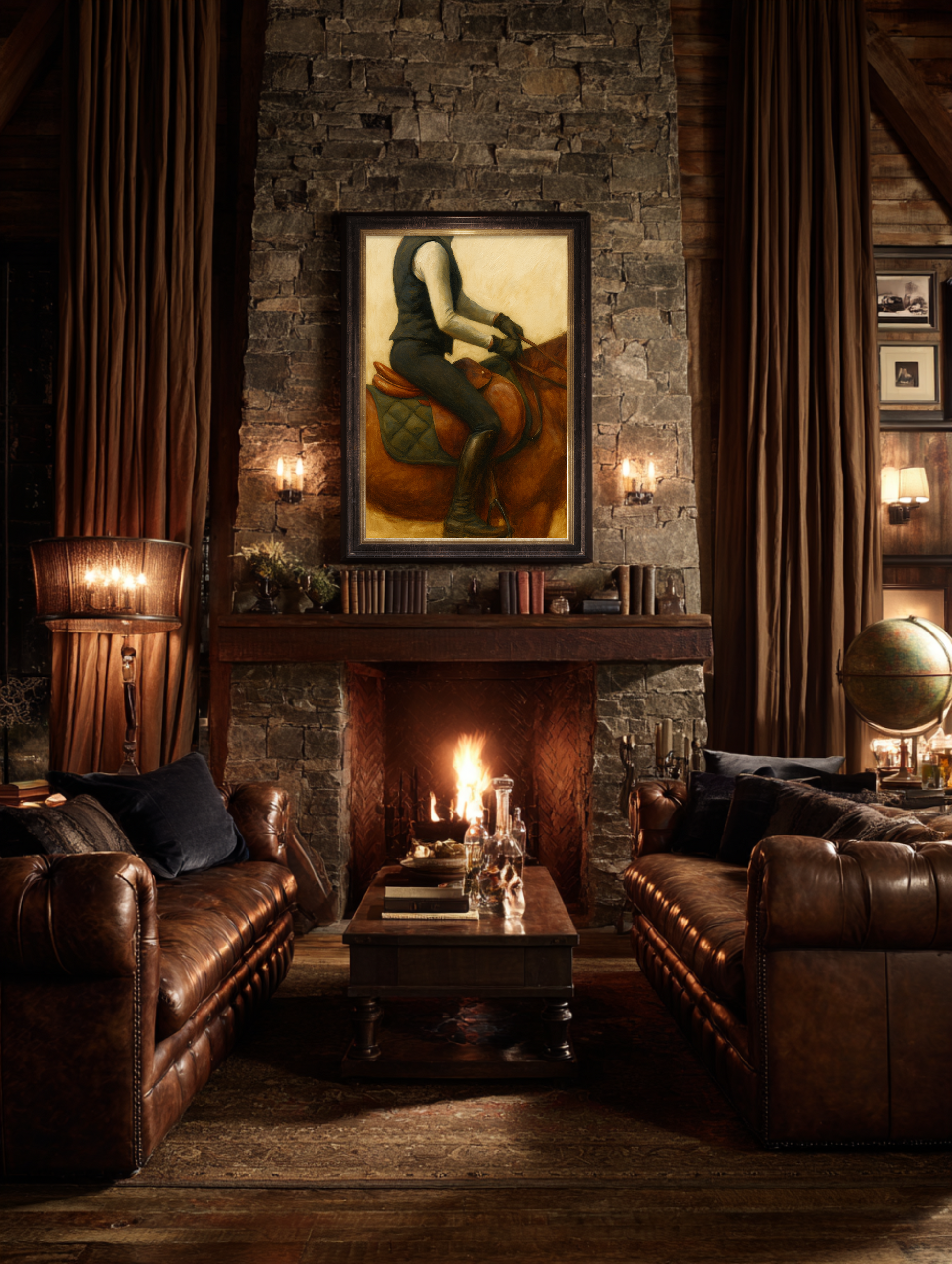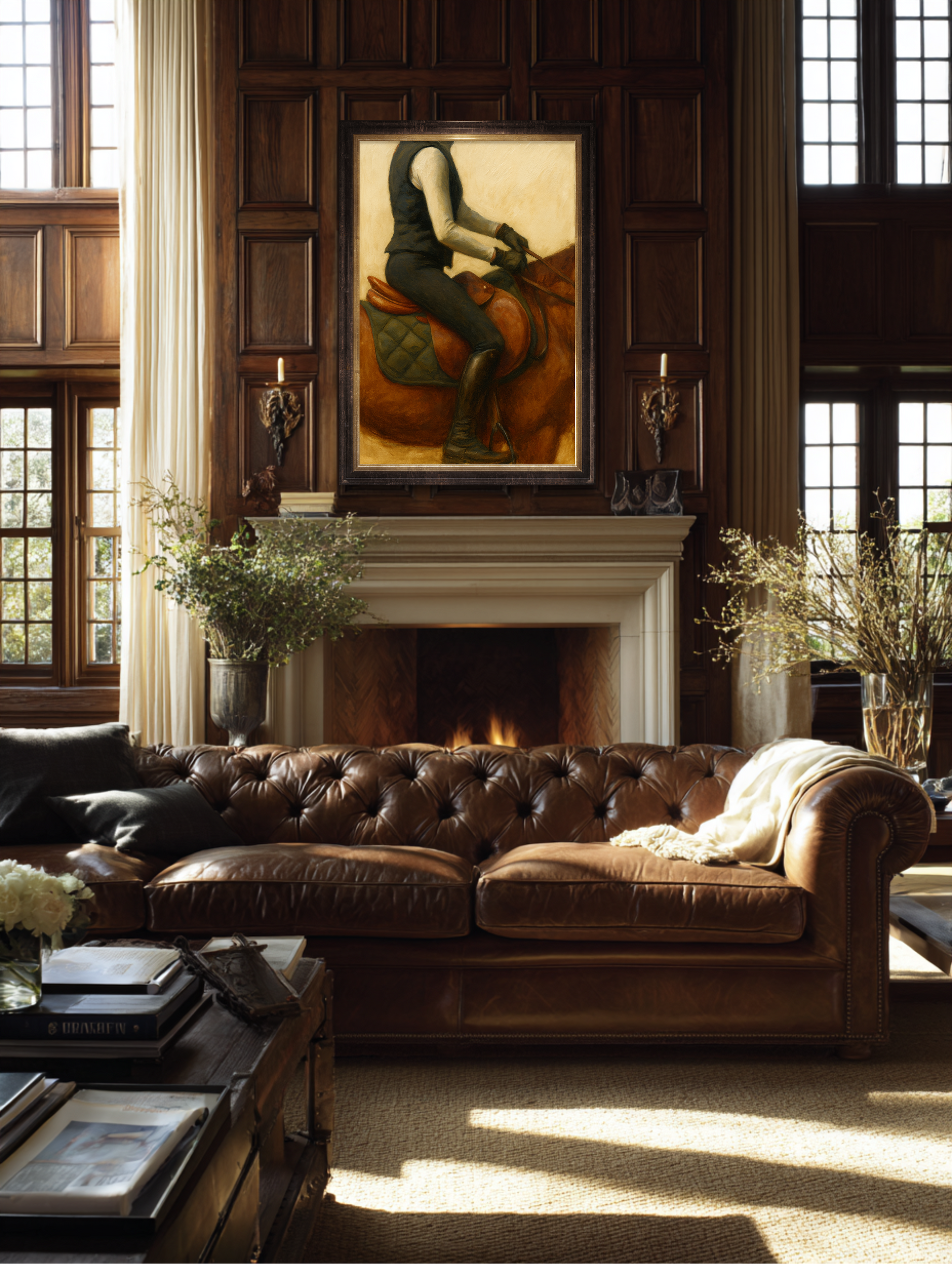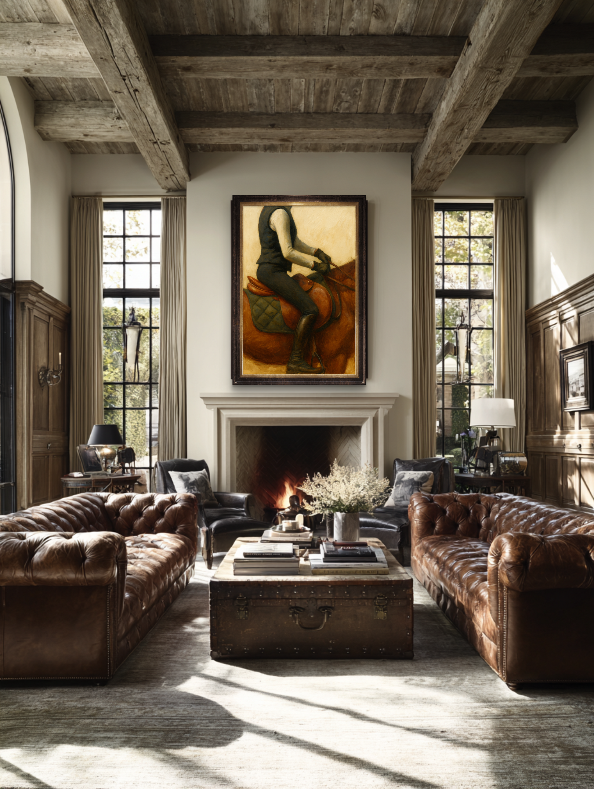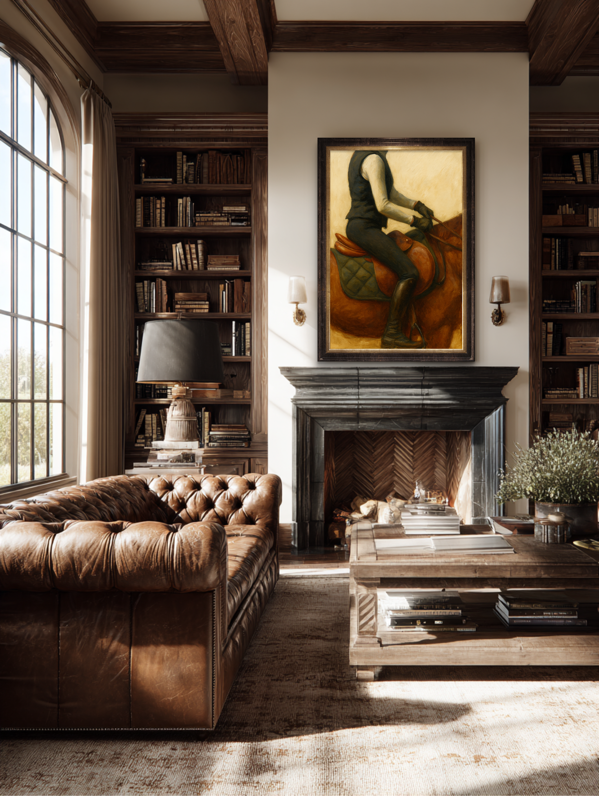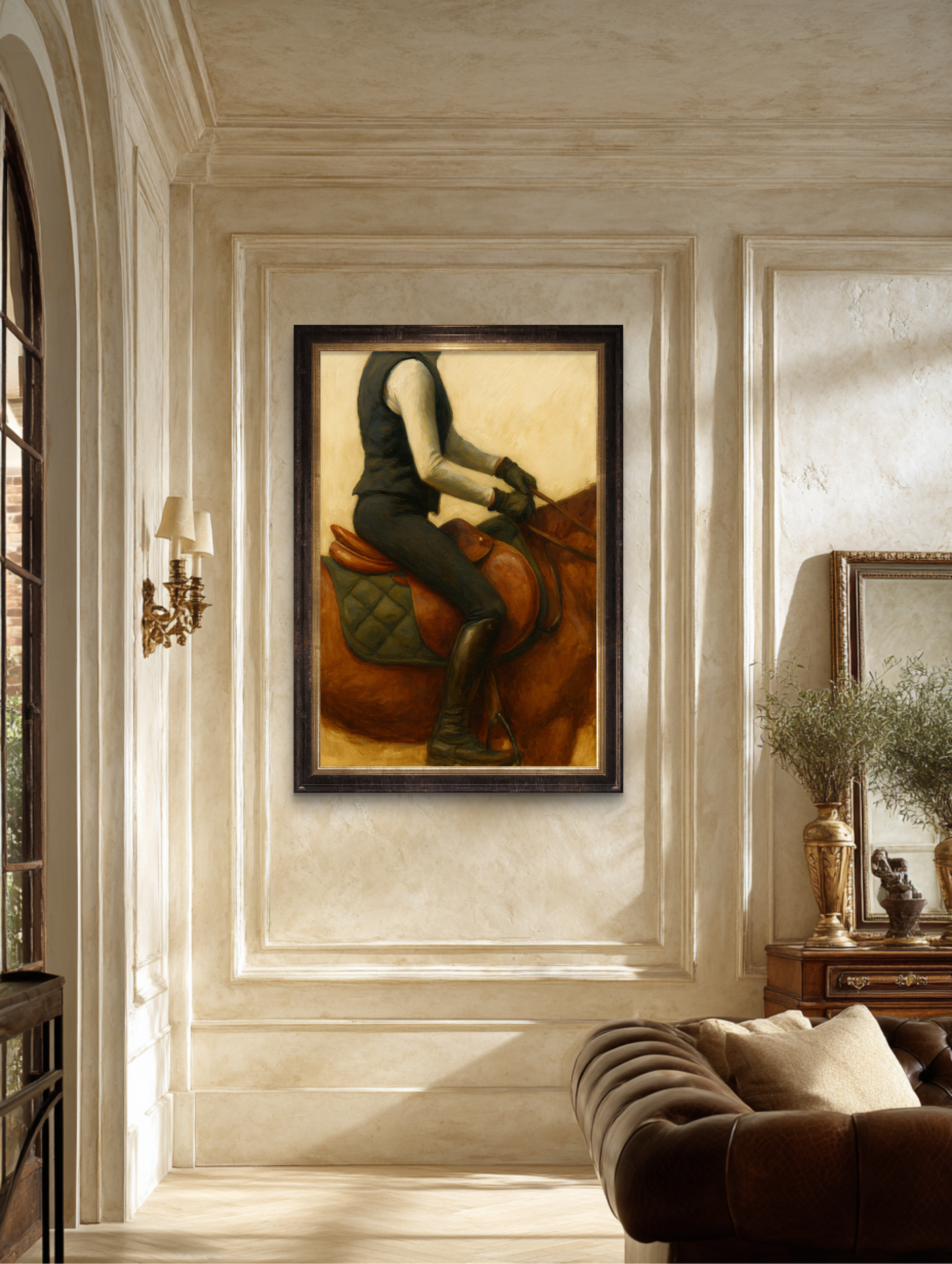 This oil painting, a study in form and restraint, belongs above a fireplace, in a paneled study, or down the long hall of a home that smells faintly of saddle soap and ambition. It radiates that old-world permanence found only in country estates, coastal retreats, and gentleman’s libraries, where time moves slower, and leather ages better.