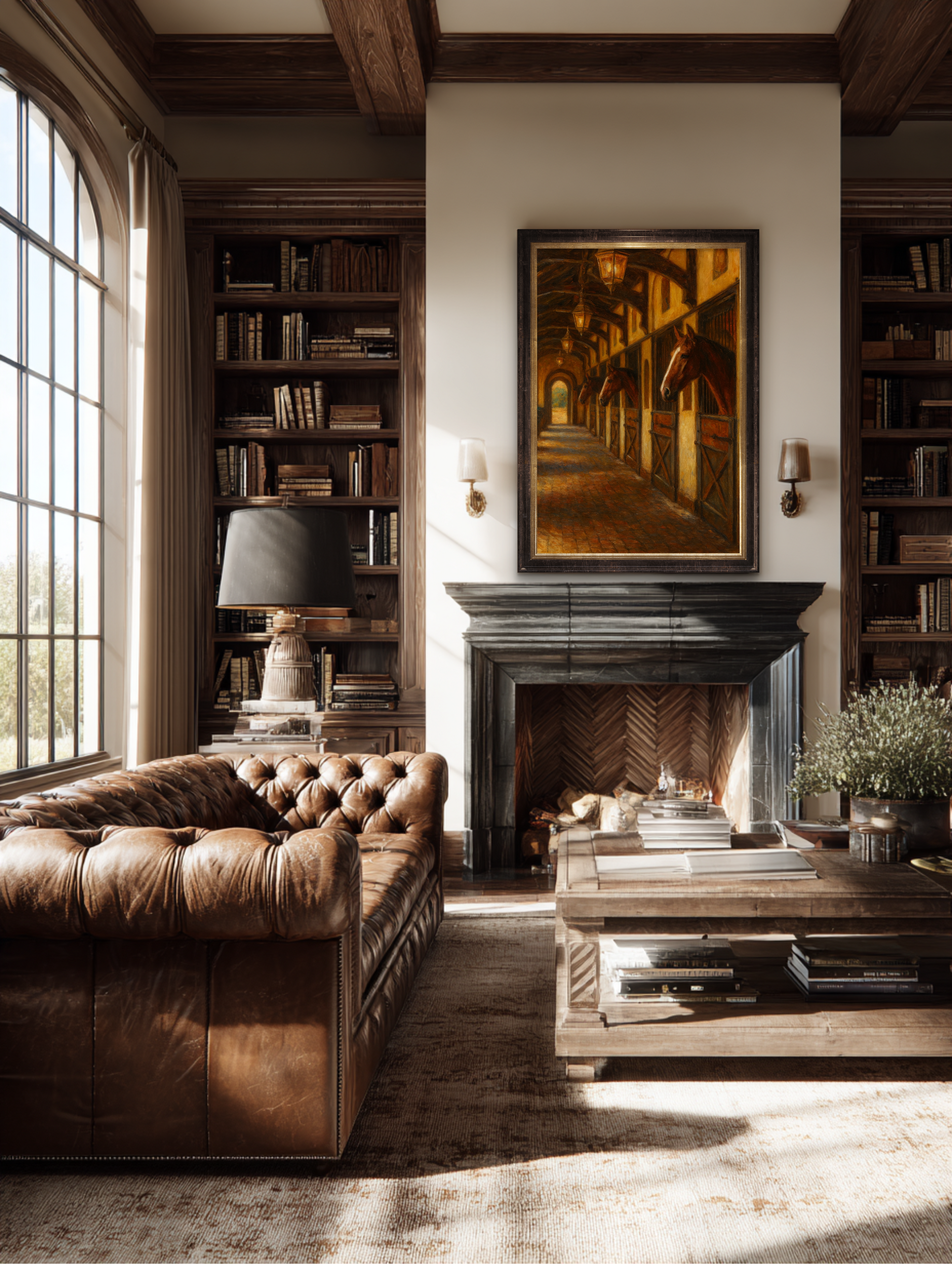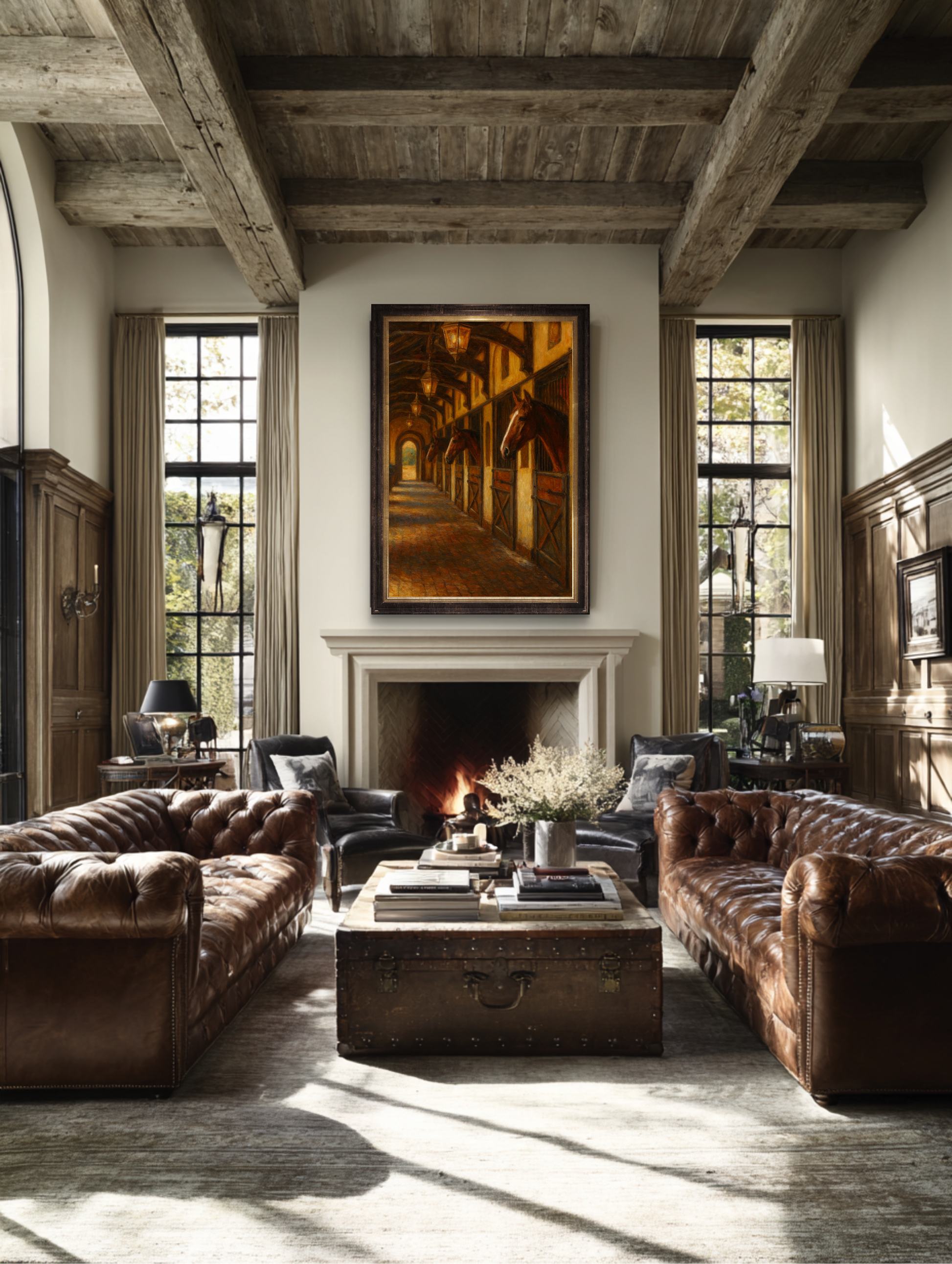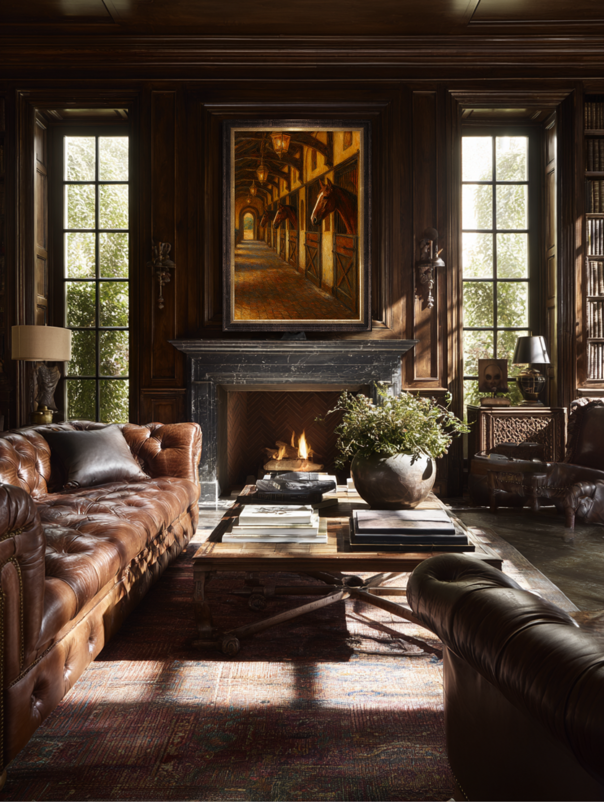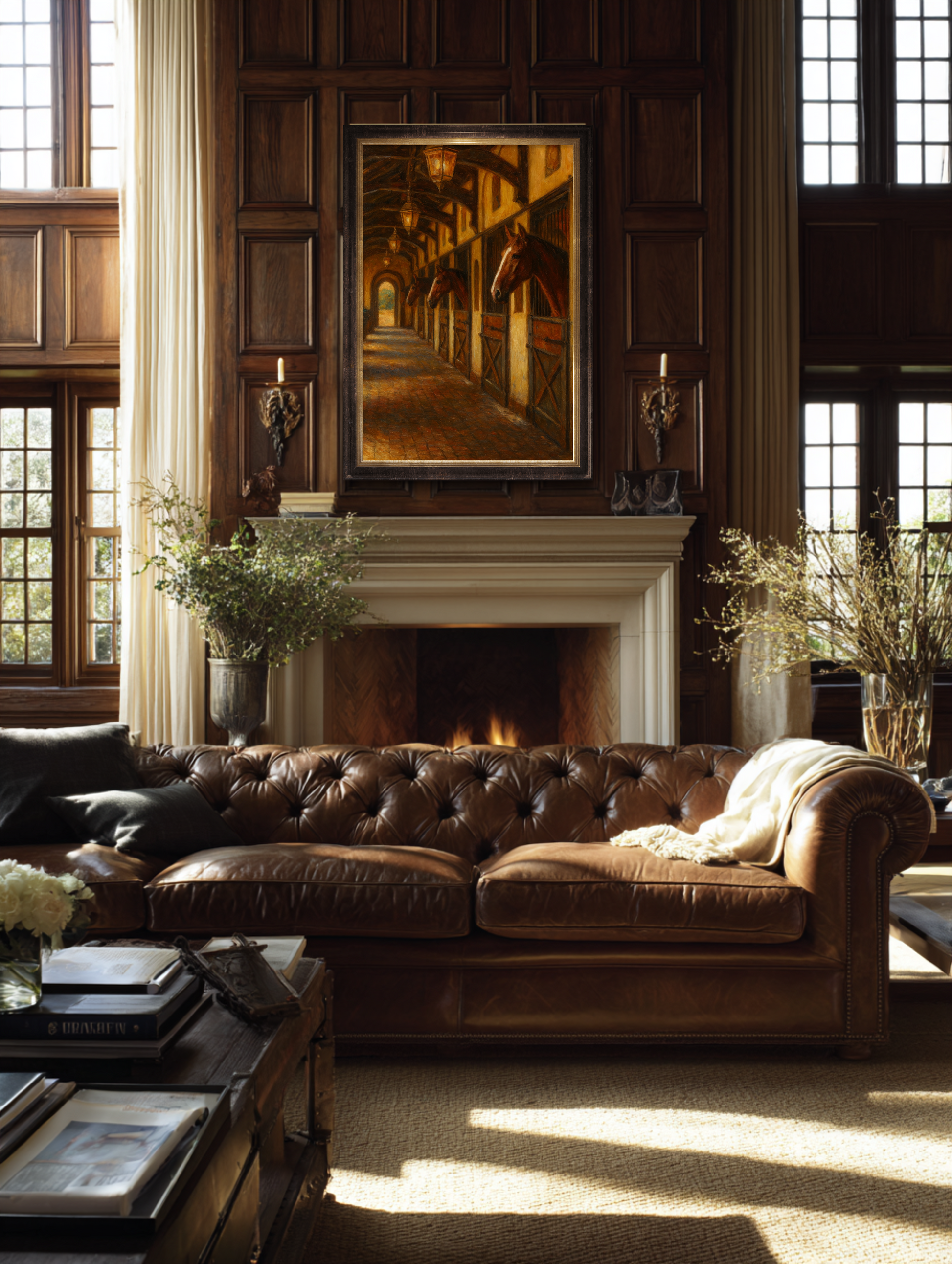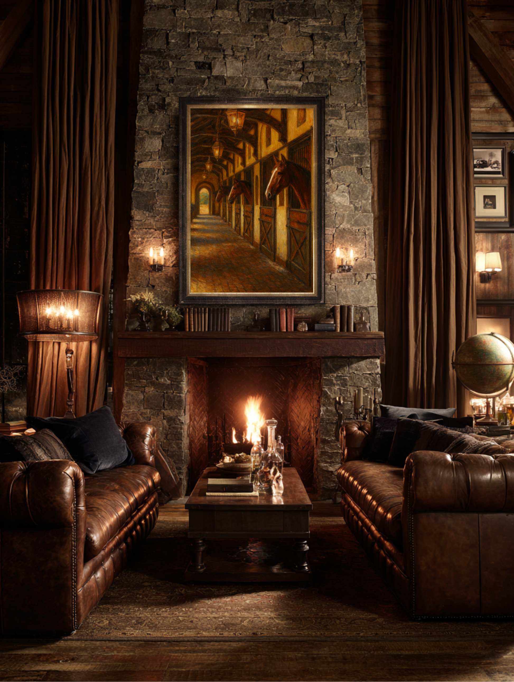 Best displayed above a roaring fireplace, in a paneled study where the cigars are kept, or along a grand hallway that demands a touch of old-world permanence. This painting doesn’t just hang, it presides. It adds that unmistakable warmth and luxury found only in country estates, coastal retreats, and well-lived lives.