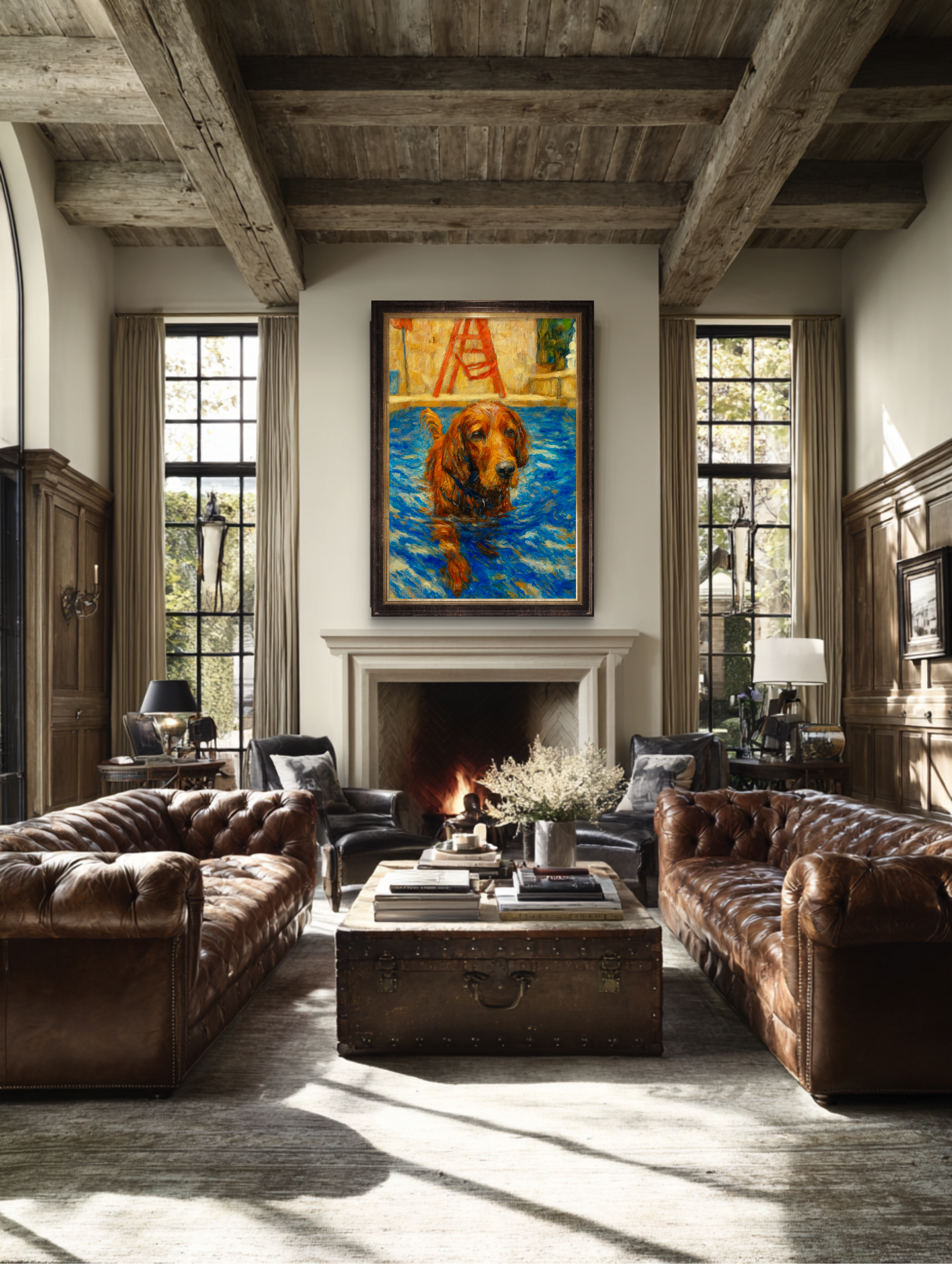 Best displayed above a fireplace, in a paneled study, or along a grand hallway where the afternoon light can glint off the gold trim, this painting radiates that unmistakable warmth and permanence found only in country estates, coastal retreats, and gentleman’s libraries. It adds not just luxury, but lineage.